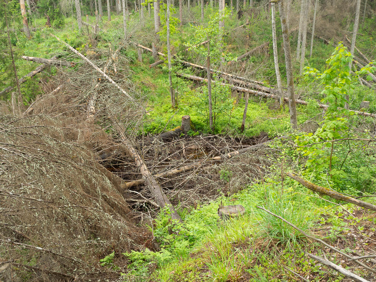 … because the original trail somehow passed through (or at least skirted the edges of) an area badly hit by the spruce bark beetle. That looks both unpleasant and dangerous.