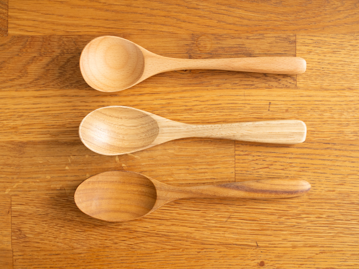 One of the shops in the cookware district in Tokyo must have been run by someone like me. They had dozens of varieties of wooden spoons, in all kinds of sizes and shapes and types of wood. I bought three likely-looking variants, hoping that at least one would be good. All roughly the same size, but varying in angle, curvature and material.