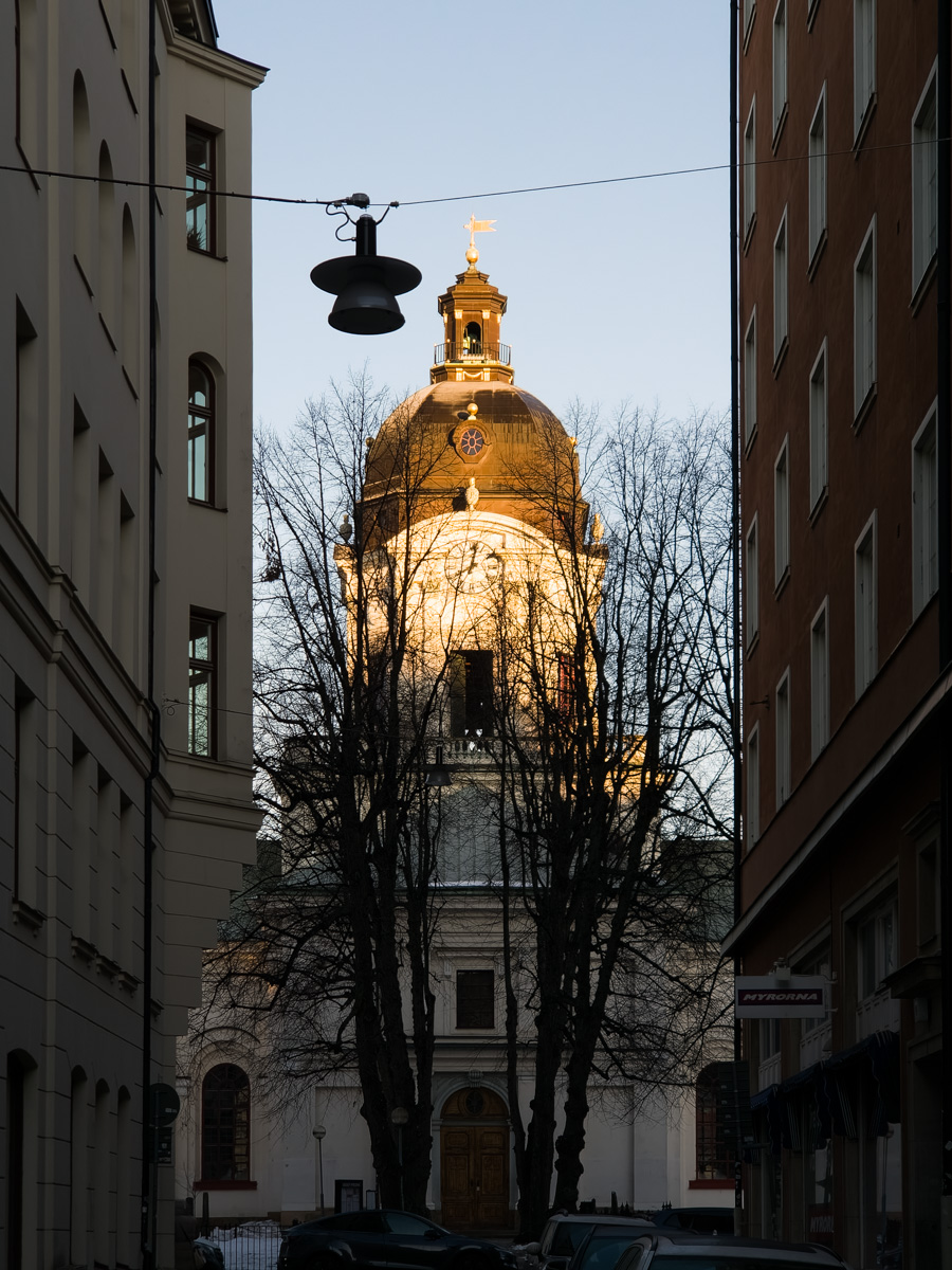 This morning I took the next train after my usual one and got to the office fifteen minutes later. Also, not having been to this office in almost a month, I’d lost my routine and got off at Stockholm Central instead of Odenplan, which is slightly closer. This had me walking past Adolf Fredrik church two minutes past eight o’clock instead of a quarter to, so I got to hear the church bells in the morning sun.