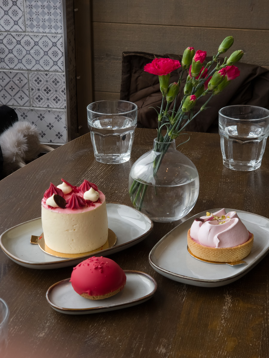 Now we’re back at the bakery and the cakes are as fabulous as ever. A red velvet raspberry cheesecake for Adrian, a raspberry truffle macaron (hallonbiskvi) for Ingrid, and a raspberry pistachio tartlet for me. I wonder if the raspberry theme is due to leftover pink materials from Valentine’s day.