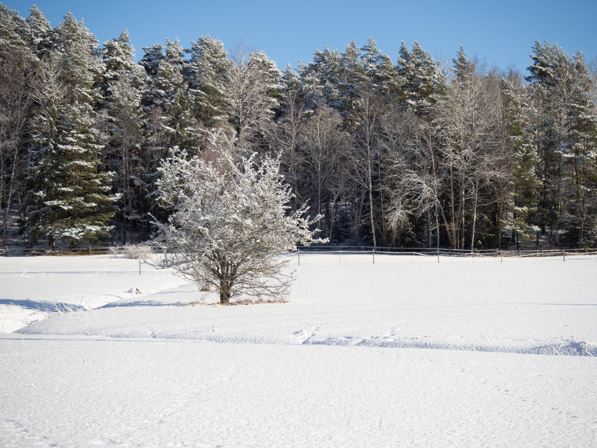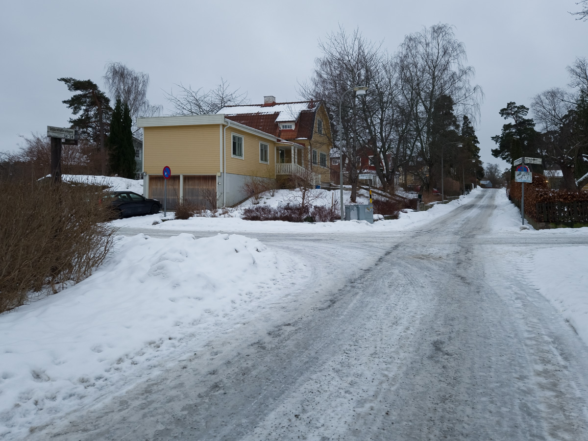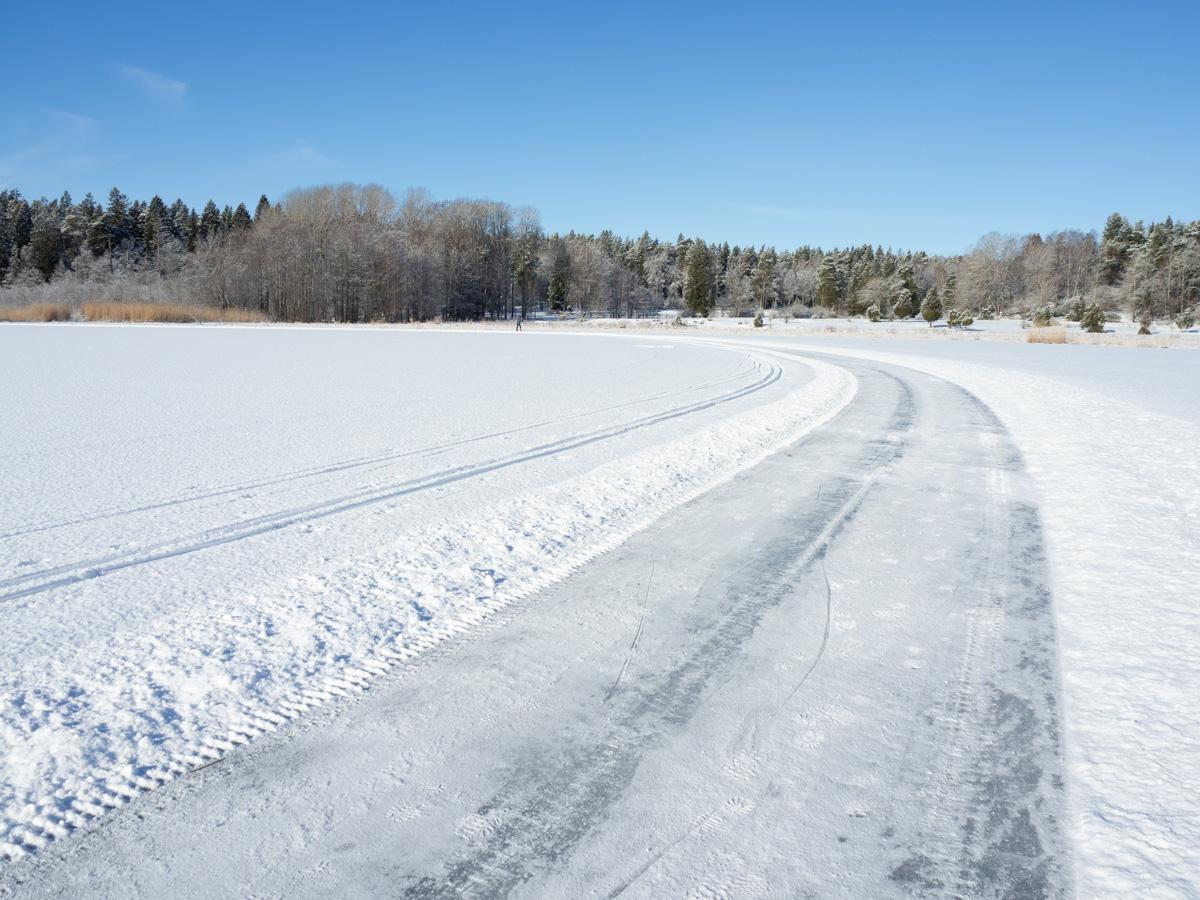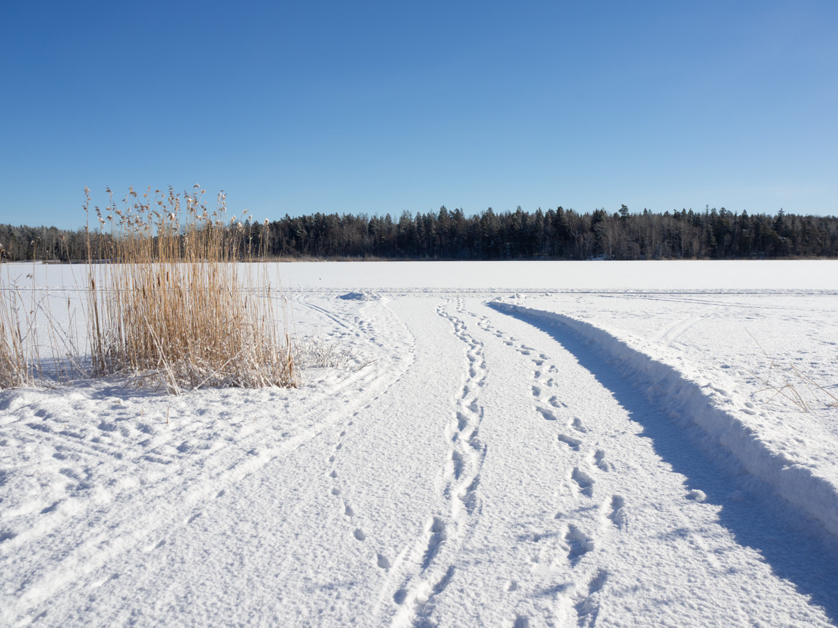 I went for a walk around lake Säbysjön on Järvafältet. First around the lake, then on the lake itself. There was a ploughed skating track on the ice, which was also great for walking.