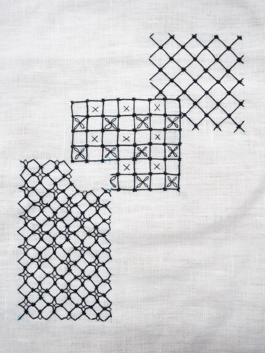 This design was supposed to be five rectangles. Three large rectangles overlapping at the corners, with the overlaps forming two smaller rectangles of negative space. Just like the first iteration, and the second one. I got so engrossed in the latticework of the second large rectangle that I completely lost sight of the big picture, and forgot to leave that one corner empty. Only when I took a step back after completing the third one did I see what I had done.